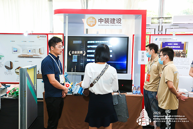 在专家主题演讲之余,精品展会同时进行,公司展位吸引了来自全国各地的众多领导、专家、行业大咖的长久驻足,嘉宾们对中装建设在建筑工业化和装配式建筑方面取得业绩予以高度肯定,对中装建设在装配式领域研发、设计、构件生产、施工、培训、咨询、信息化建设等方面的工作表示赞赏。