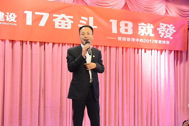 晚会伊始,中装建设营销管理中心总经理董网生以“17奋斗、18就发”为主题做营销管理中心年度经营管理工作报告。董总指出,经过多年的市场拓展和总结,结合公司上市一年来的跨越,集团战略版图愈加清晰,市场资源整合效果显著,经营管理工作高效务实。2018年,营销管理中心将充分把握宏观环境变化和市场发展态势,以公司总体战略规划为蓝图,进一步优化整体业务结构和收益贡献,与各区域运营中心一起初步实现公司百亿企业目标。